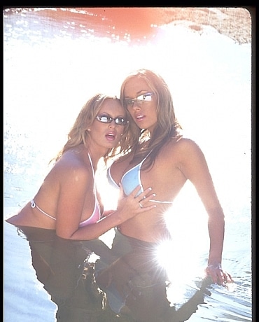 Part two of the busty babes carwash featuring, well...busty babes! But now these two stacked starlets get oiled up and slip into a brisk outdoor oasis together for some more fun in the sun!